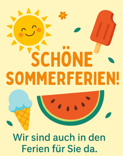 Ob unterwegs oder zu Hause – wir sind auch in den Ferien wie gewohnt für Sie und Euch da.