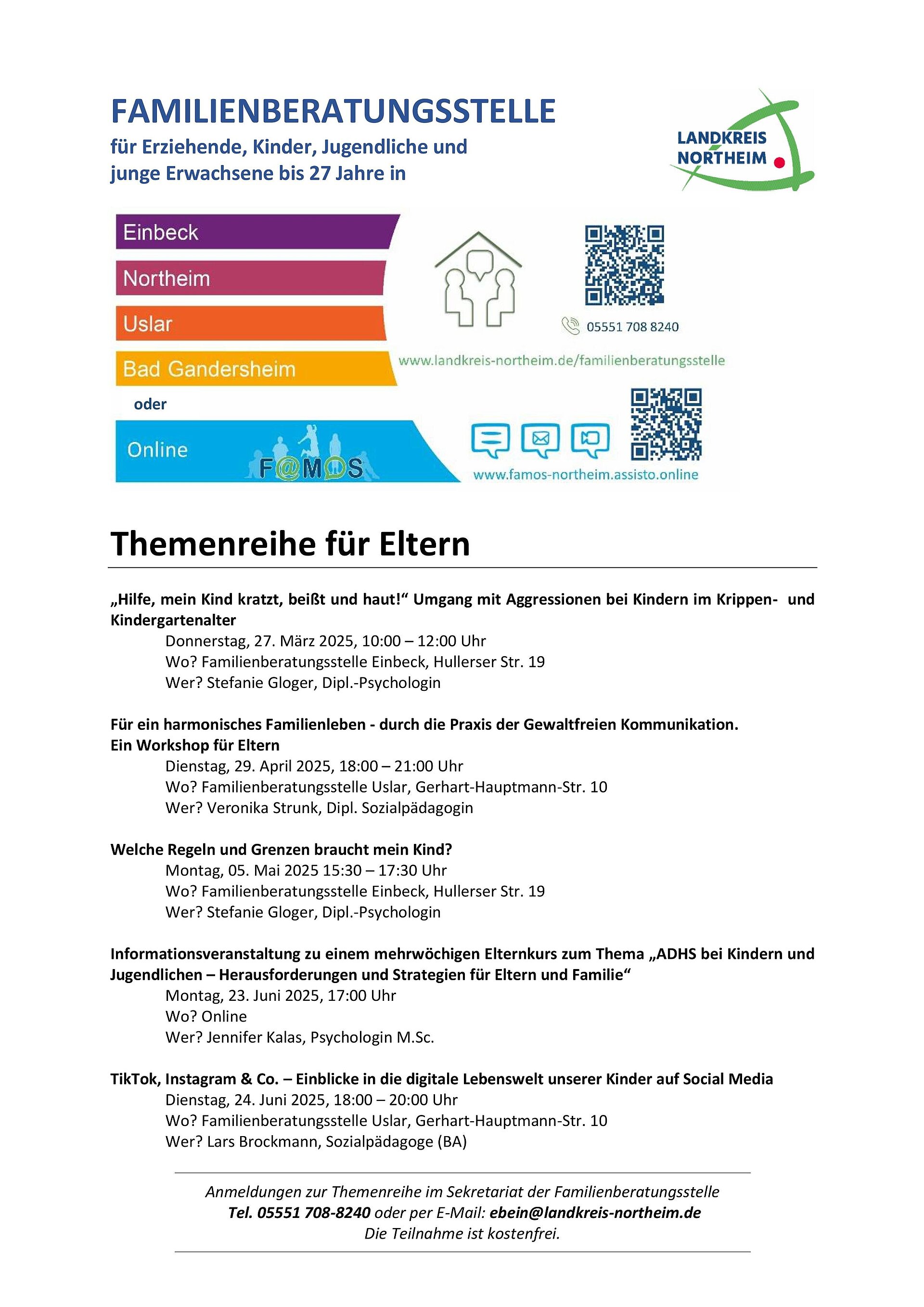 Bei Interesse melden Sie sich gerne mit einer E-Mail an famos(at)landkreis-northeim.de an. Sie erhalten den Link für die Veranstaltung daraufhin zugeschickt.
