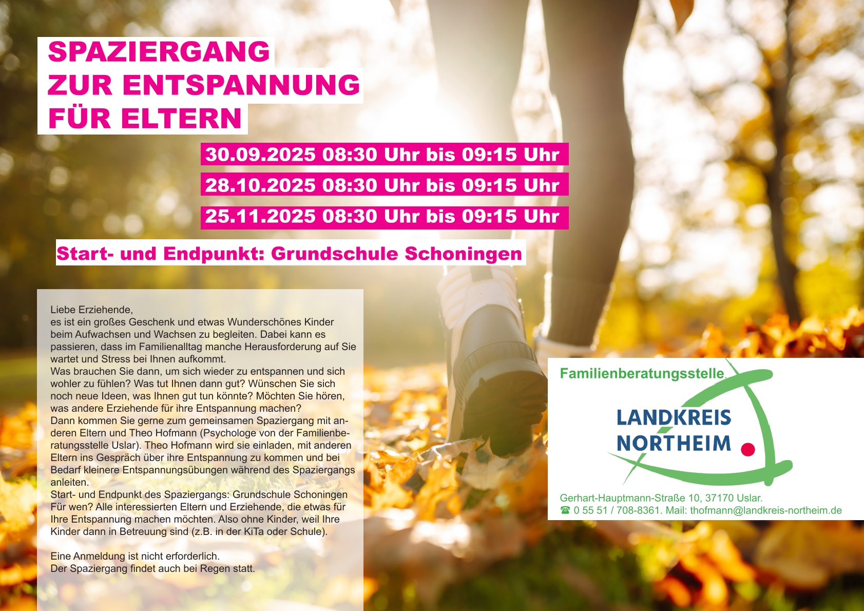 Anmeldung über: gleichstellungsstelle(at)landkreis-northeim.de