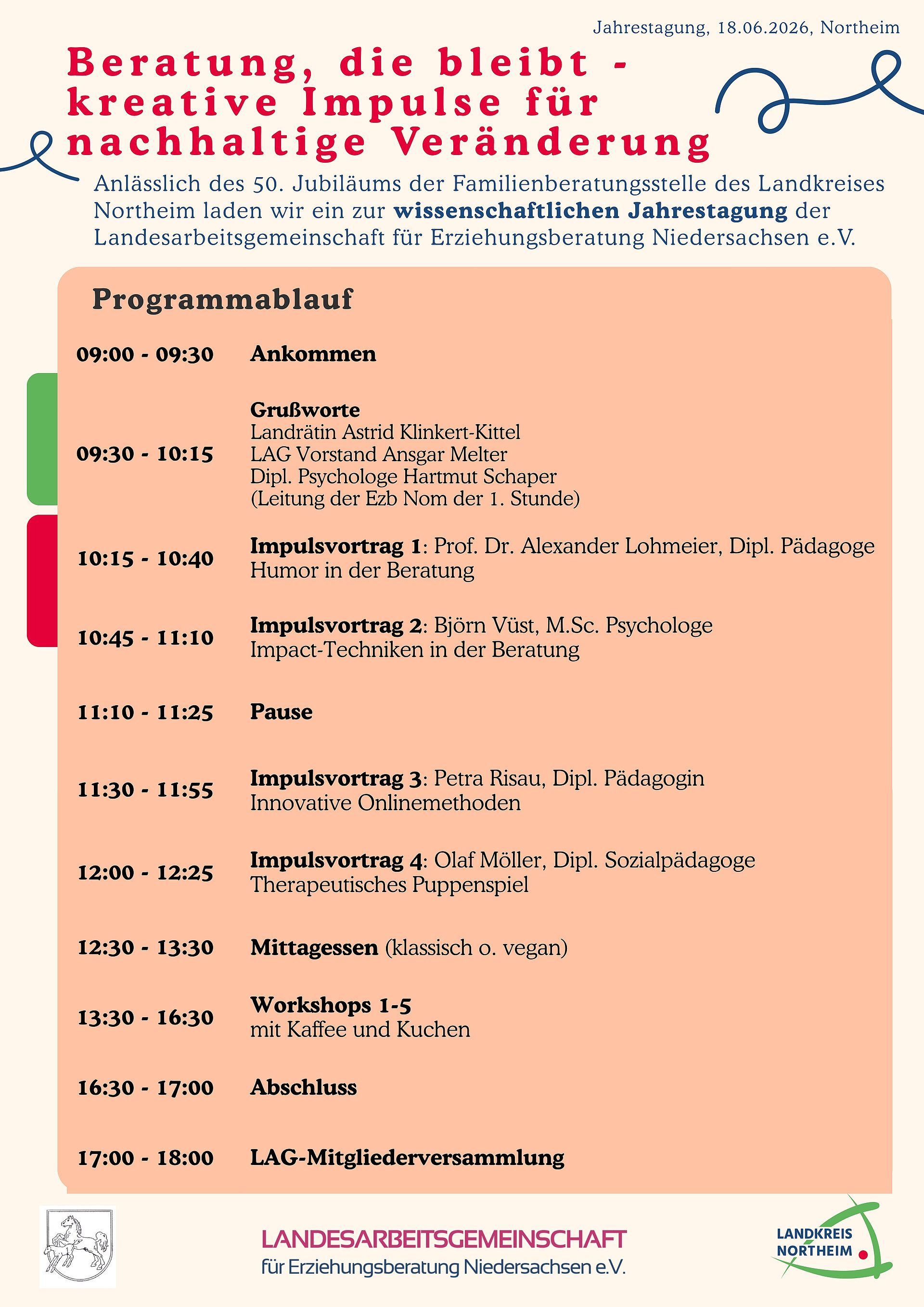 Wir laden Sie herzlich ein zur wissenschaftlichen Jahrestagung der Landesarbeitsgemeinschaft für Erziehungsberatung Niedersachsen e.V.